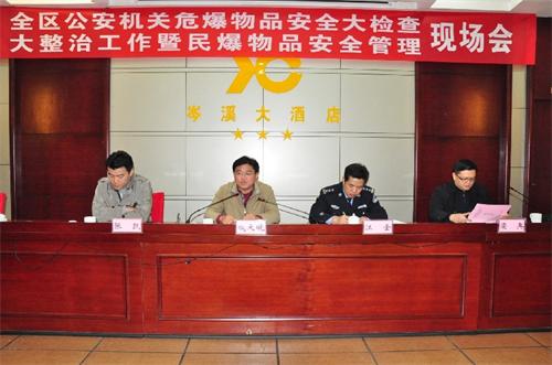 当天下午,全区公安机关危爆物品安全大检查、大整治工作暨民爆物品安全管理现场会在岑溪市大酒店五楼会议室隆重召开。岑溪市副市长、公安局长梁兵首先代表岑溪市公安局致欢迎辞,对全区各级公安机关治安管理部门的领导到岑溪传经送宝表示热烈欢迎,并简单介绍了岑溪市公安局开展民爆物品安全管理的经验做法和取得的成效,希望通过这次现场会交流,在各级领导的关心支持下,进一步提高岑溪市的民爆物品安全管理水平。随后,全体与会人员观看了岑溪市公安局制作的对民爆物品实行“购、运、储、用”全程跟踪监督管理,全面确保民爆物品安全的经验做法的视频汇报片。