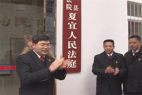 蒙山法院院长张勇与辖区党政领导为法庭揭牌