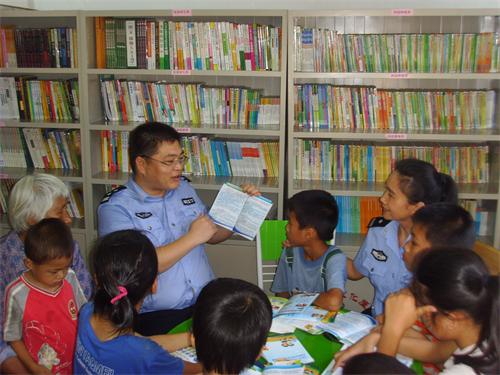 民警在农家书屋给“留守儿童”、“留守老人”上交通安全课