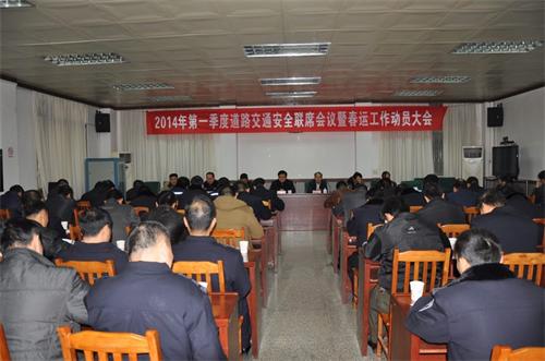 1月15日上午,岑溪市在市政府一楼会议室召开2014年第一季度交通安全联席会议暨2014年春运工作动员大会,听取岑溪市交通安全联席会议成员单位对今年第一季度交通安全工作情况汇报,对切实做好2014年春运交通安全工作进行动员部署。岑溪市副市长、公安局长梁 兵出席会议并作讲话。