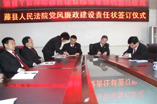 会上,党组书记、院长石忠贵还分别与各分管领导、各部门责任人层层签订了《2014年藤县法院党风廉政建设责任状》。领导干部纷纷表示,要以身作则,廉洁自律,以更加坚定的信心、更加坚决的态度、更加有力的举措推进党风廉政建设和反腐倡廉工作。