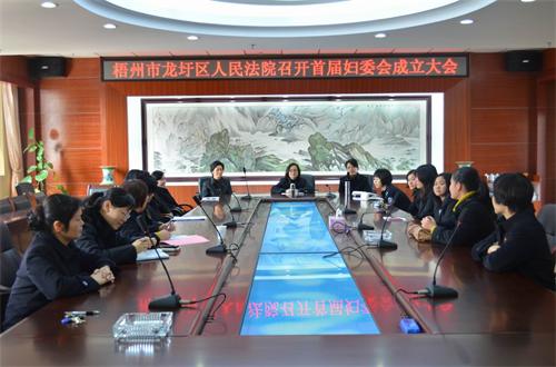 龙圩区法院成立于2013年11月,共有干警72名,其中女干警21名,占全院干警的29%。为充分发挥妇女组织的作用,进一步调动女干警的工作积极性,切实维护女干警的合法权益,推动审判执行等各项工作取得新进展,在会上成立了首届妇委会。在充分发扬民主,广泛征求女干警及各部门意见的基础上,协商推选出潘群清同志为首届妇委会主任,苏恒、张承辉同志为首届妇委会副主任,易红、梁园为首届妇委会委员。