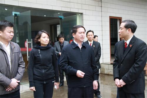在立案信访服务大厅,石忠贵院长向市委副书记全桂寿一行人简要介绍了立案窗口开设了妇女儿童维权岗、涉军维权岗、“立案绿色通道”和落实便民服务措施的情况。石忠贵院长汇报说,该院在开展全院群众路线教育实践活动时,一是结合“司法作风建设年”主题教育活动,加强廉洁司法建设,改进司法作风;二是坚持为民司法,高度重视民生案件立案、审理、执行工作,切实保障人民群众的合法权益;三是坚持便民举措,推行巡回审判,通过调解手段化解各类纠纷,并积极开展“能动司法服务企业”、“党员义工服务返乡农民工”、“美丽藤县·清洁乡村”三项服务活动;四是开展阳光司法,接受各方监督,听取群众意见,保证公正廉洁司法。