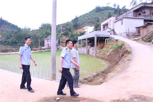 “今年田地、山上都种了什么农作物?村里组建的治安巡逻队筹备得怎么样了?……”中午在派出所饭堂吃了饭,刘立毅在民警张俊捷的陪同下,沿着弯弯曲曲的山路驱车前往20公里的太平村,和村支书于敏奇、村委主任于光宝攀谈起来。“现在外地的老板到这里投资承包村民的荒山种植速生桉,还聘请村民做管理,村民实现在家门口就可以就业。”村委主任于光宝介绍。刘立毅为村里出点子说,根据这里的气候可以多引导村民种植八角、山楂等经济林,增加村民的收入。”