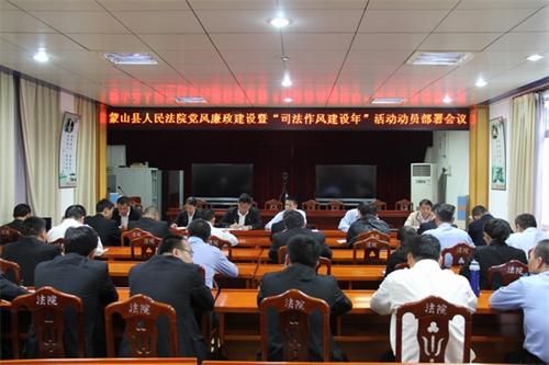 蒙山法院党组书记、院长张勇要求全院干警要全面落实梧州市中级人法院党风廉政建设暨司法作风年工作动员会会议精神,紧密围绕“让人民群众在每一个司法案件中都感受到公平正义”这个目标,坚持司法为民、公正司法这条主线,在实际工作中,把党的群众路线教育实践活动与开展“司法作风建设年”活动结合起来,顺应人民群众对司法公正、权益保障和公共安全的新期待,提高司法素质能力,司法工作亲和力与公信力。