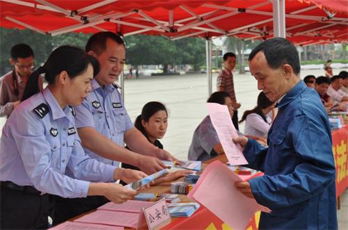岑溪市公安局在开展“普法宣传进万家”活动中,主要以宣传公安部《关于公安机关处置信访活动中违法犯罪行为的指导意见》及《刑法》、《集会游行示威法》、《治安管理处罚法》及国务院《信访条例》等法律法规,结合平时工作中处理的各种典型案例,向广大市民群众发放《公安机关对扰乱信访工作秩序违法犯罪行为的处理》、《公安机关对信访活动中妨碍社会管理秩序违法犯罪行为的处理》、《信访人在行使权利的同时应当履行的义务》、《普法千字文》、《交通安全小手册》等法律法规宣传资料。广大市民群众积极响应,纷纷围过来领取宣传资料并咨询相关法律知识,他们表示一定要学法律,懂法律,用法律来维护自身的合法权益,做到理性、合法表达诉求。