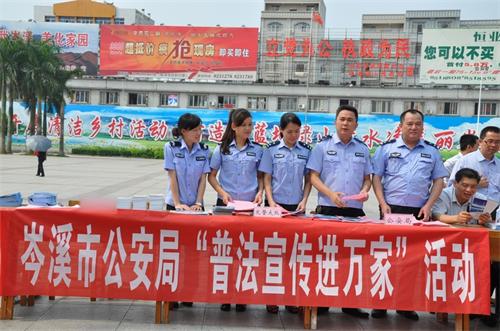 为切实转变工作作风,自觉践行群众路线,进一步加强普法宣传教育,不断提升群众的法律意识,结合党的群众路线教育实践活动,2014年4月30日,岑溪市公安局再次组织民警深入人民广场开展“普法宣传进万家”系列活动,持续推进岑溪市公安工作创新发展。岑溪市公安局法制、交警、宣传等警种民警参加了宣传活动。