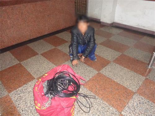 5月5日晚,城北派出所值班民警接到联通公司的员工报案称:在岑溪市岑城镇旧日杂公司宿舍发现了一名盗窃网线的小偷。城北派出所值班民警接报后,马上带领人员前往处置,在联通公司员工的协助下,成功将盗窃网线的小偷抓获。