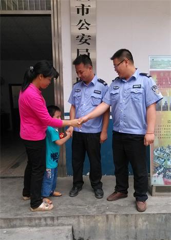 5月5日,岑溪市公安局巡防大队巡防队员成功为一名走失小男孩找到家人,帮助其一家团圆。