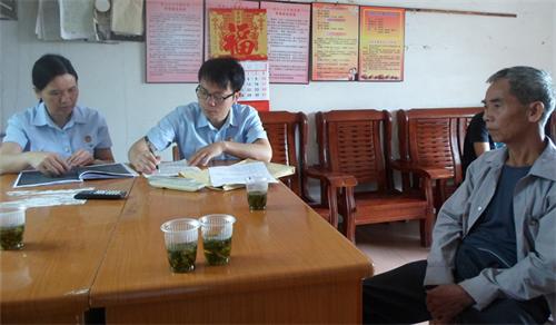 2014年5月12日上午,苍梧县人民法院刑事审判庭全体法官与梧州市龙圩区司法局工作人员一起,深入该辖区广平镇武陇村,就该村社区矫正对象赵某进行了回访调查。