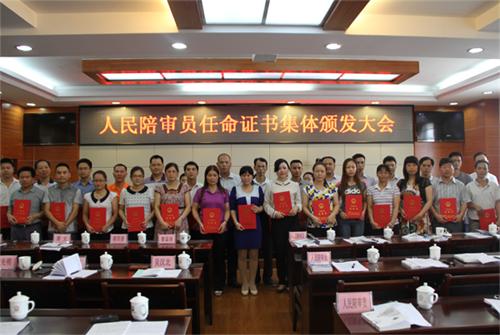 5月13日下午,岑溪市人民法院为30位新任命的人民陪审院举行了任命证书颁发仪式。