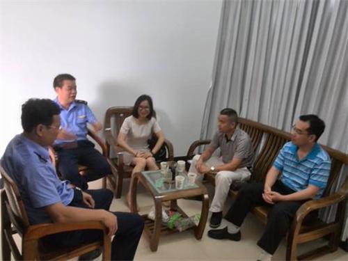 龙圩法院马副院长(中)正在工商局商讨联动调解工作