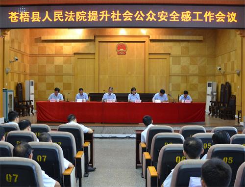 5月28日上午,苍梧县人民法院召开全院干警大会,认真传达贯彻全县提升“公众安全感”工作会议精神,并结合该院工作实际部署提升社会公众安全感工作,动员全体干警增强能力,提高水平,转变作风,切实加强做群众工作、解决实际问题和化解社会矛盾的能力,提高社会公众安全感和满意度。