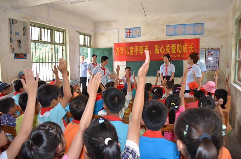 为了维护在校未成年人的合法权益,增强未成年人的自我保护意识。龙圩区法院的法官叔叔阿姨们对大燕村小学56名小学生们上了一堂别开生面的“爱心提醒”课。
