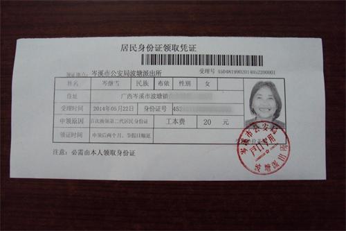 民警办理好的身份证领取凭证