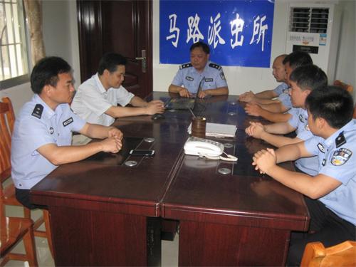 江金副局长首先查看了马路派出所的办案区和办公区,对马路派出所的软硬件建设给予了充分的肯定。接着江金副局长听取了马路派出所所长莫友平对派出所近期以来的各项工作的汇报。江副局长提出三点要求,一是要按照“四个一律”的要求完成执法办案场所规范化改造,全面清除执法安全隐患,规范执法水平,执法规范化建设要软硬件一起抓;二是要加强维稳工作,积极疏通群众诉求渠道,防止群体性事件的发生;三是要大力加强队伍建设,积极调动民警的积极性,进一步提高队伍的政治素质和执法能力,努力提高马路派出所的绩效成绩。