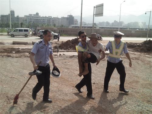 民警把老人家抱到阴凉的地方