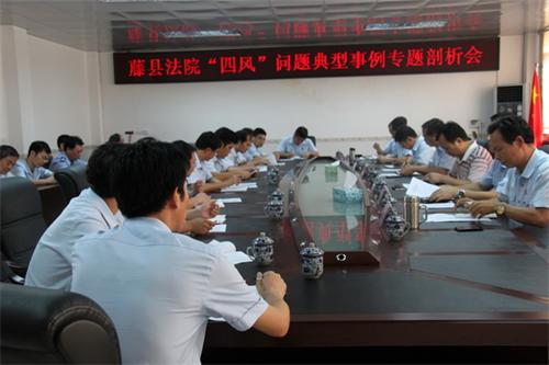 6月26日,藤县法院召开党的群众路线教育实践活动典型事例专题剖析会议,该院班子全体成员、各部门负责人参加会议。县委教育实践活动第三督导组组长黎伟业、副组长唐奕伟、卢培华应邀出席指导。
