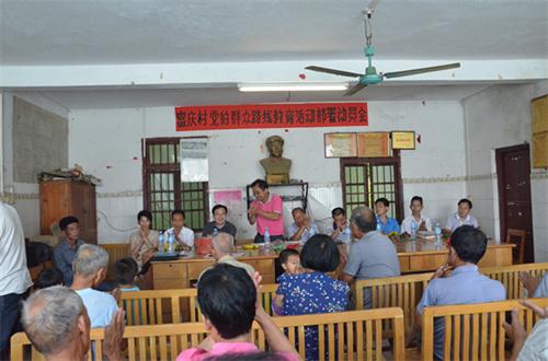 在村委会二楼会议室,长洲法院党支部的党员干警和富庆村的全体党员召开了以“庆七一”为主题的座谈会,大家结合目前正在深入开展的党的群众路线教育实践活动,畅谈了如何充分发挥党组织在农村工作中的中坚作用带领广大群众走上致富路、如何切实发挥共产党员的先锋模范作用切实为群众办实事办好事,以及在新时期如何进一步密切党群干群关系,增强党员的光荣感和使命感等相关议题。