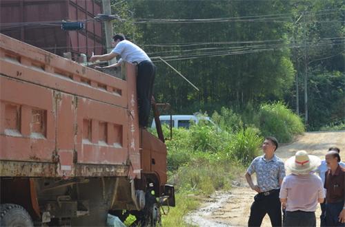 藤县东荣镇一中年货车司机在卸砂时不幸触高压线身亡,丢下妻儿老小,受害人家属悲痛之余将电力公司诉至公堂,请求索要各项赔偿款达88万余元。为进一步明确这起因触电身亡引发的人身损害赔偿纠纷案情,分清过错责任,确保公平公正审判,7月22日(正值大暑的前一天),藤县人民法院太平法庭法官一行4人,顶烈日冒酷暑,驱车30多公里前往东荣镇均常村事故发生地进行现场勘验。