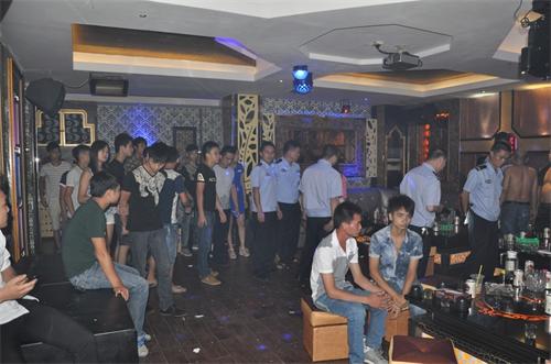 2014年8月下旬,城南派出所民警在所长潘永寿的直接指挥下,经过连续作战,对辖区内的娱乐场所进行全面深入的大检查。民警以高度负责任的态势,对每一间KTV都进行了深入细致的检查,查看是否存在携带管制刀具、违禁物品进入娱乐场所的情况,并对现场的经营者、消费者进行法律宣传教育活动,督促其要绝对保证依法依规经营、文明消费,绝不允许有携带管制刀具、违禁物品等进入娱乐场所等违法行为的出现。