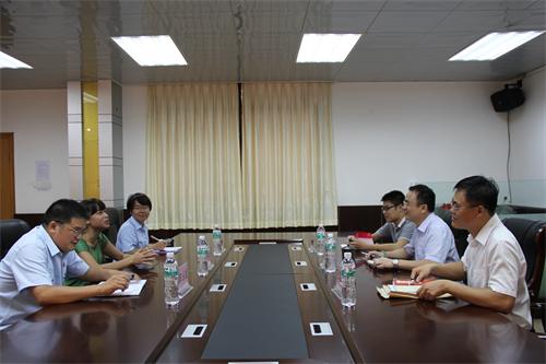 梧州市司法局副局长覃建华(右中)与万秀区法院副院长黄秋红(左中)商讨“诉调对接”机制