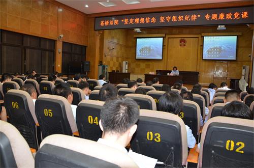 按照苍梧县委“坚定理想信念,坚守组织纪律”党风廉政主题教育活动的要求,2014年9月17日下午,苍梧法院院长陈文萍结合法院党员干部的思想和工作实际,用通俗易懂的语言为全院干警上了一堂生动的廉政党课。