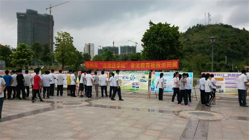 为进一步贯彻落实党的十八大提出的“全面推进依法治国”方略,积极探索创新青少年法制宣传教育工作机制,总结推广“法律进学校”工作的经验和做法,深入推进“法律进学校”活动,近日,以“落实‘六五’普法规划,共建法治文化校园”为主题的梧州市“法律进学校”普法教育宣传板报巡展活动在梧州高中拉开帷幕。市司法局、市教育局对此次活动作了周密部署,在9月15日—10月20日,将对我市19所直管中学出版的法制教育宣传板报安排在梧州高中、梧州一中、梧州三中、梧州四中进行巡展,大力宣传学校普法依法治校工作的先进经验和做法,进一步加大青少年普法宣传教育及依法治校工作的宣传力度。