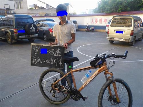 嫌疑人与其涉嫌偷盗的山地车