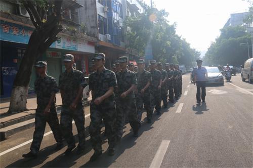 开班仪式后,参加培训学习的30名防暴协警队员在教官的带领下,到岑溪市小广场首先进行了队列和体能、技能训练。