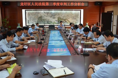 2014年10月14日,龙圩区法院组织全体中层以上领导干部召开了第三季度审判工作分析会暨中心组学习会,及时贯彻落实10月10日梧州市中级法院组织召开的全市法院第三季度审判工作分析会及近期召开的全国、全区和全市党的群众路线教育实践活动总结大会精神,全面分析龙圩区法院今年1-9月审判工作情况,并对2014年第四季度审判工作进行全面具体部署,要求各部门以只争朝夕的精神,发扬成绩,查找不足,全力推进各项审判执行工作,确保全面出色完成全年各项工作任务。