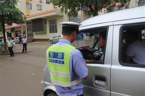 (交警在认真执行“六打六治”专项行动)
