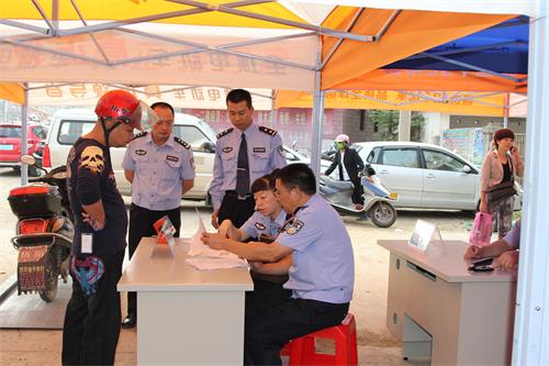 10月24上午8时许,岑溪大队在原探花收费站工作区设置好第一站服务点,正式开展岑溪市电动自行车、机动轮椅车、燃油助力车注册登记工作。民警在服务点通道外竖着红底白字醒目指示牌和电动车登记注册的相关宣传资料,在工作区分别设立导办、资料审核、查验、档案、发牌等服务岗,开展流水线业务办理工作,提高效率。
