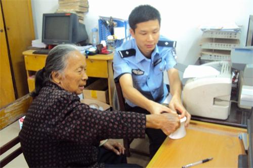 2014年10月30日上午,一位男子匆匆忙忙地走进岑溪市公安局波塘派出所户籍民警的面前 ,说:他姓黄,车上载的是自己90多岁的老母亲,因身份证丢失,现急需办理身份证补办银行卡和医保卡。户籍民警看到车上的老大娘,白发苍苍,腿脚不能动弹。 户籍室民警本着为群众服务的原则,马上和老大娘的儿子一同把老大娘从车上抬到户籍照相室采集相片。而当日正值波塘镇圩日,前来办事办证的群众很多,前来办证的群众见到步履蹒跚的老大娘,都纷纷表示理解,自觉地礼让老人先采集相片、信息。历经10多分钟后,民警终于为老人采集了合格的二代身份证相片。