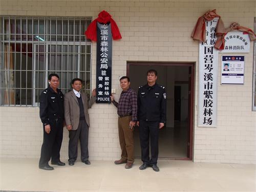 11月5日上午,岑溪市森林公安局驻紫胶林场警务室正式挂牌,岑溪市林业局副局长、森林公安局局长唐壮、岑溪市紫胶林场场长廖克荣及驻场民警等人共同参加了挂牌仪式。