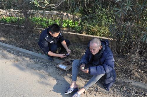 在等待中,民警从附近的村民家中找来了红薯和水,并亲自给老人喂食让其补充能量。过了大约一个小时,老人的亲属及时赶来接老人回家。当老人的家属看到民警的悉心照顾后连连对民警说:真的是太谢谢您了!