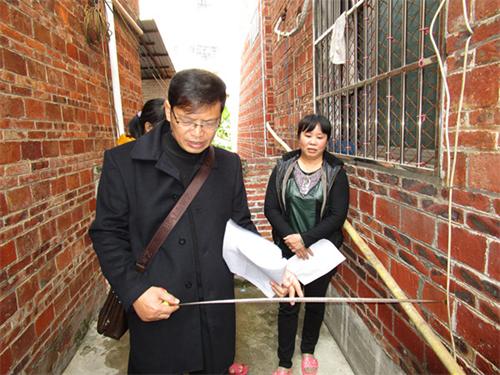 2014年11月24日,长洲法院执行局的法官一行数人驱车前往长洲区龙新村,对一起相邻通行纠纷案件进行现场勘查调解。