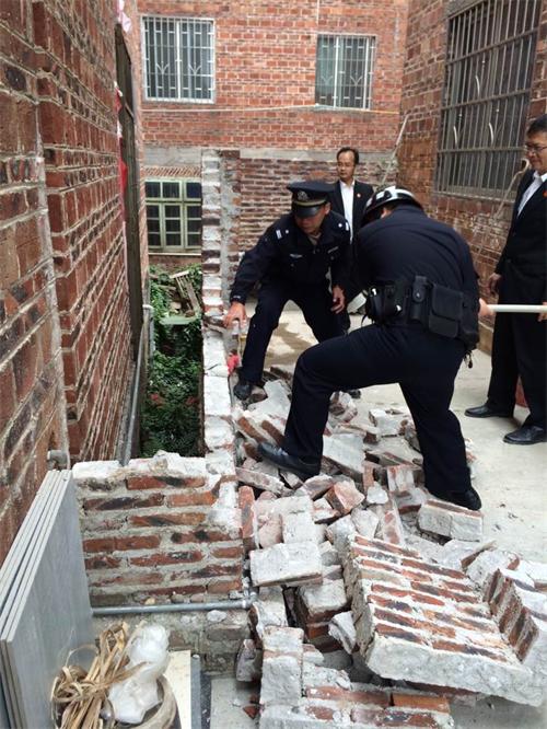 11月26日,根据执行局的申请,梧州市长洲区人民法院法警队在副队长带领下协助执行局外出执行,强制拆除被执行人违法在道路上建造的围墙。到达现场后,法警队立即疏散无关人员,并拉好警戒线。为了执行工作能够又好又快的顺利进行,法警队员们发扬不怕苦不怕累的精神,积极主动,有一分热,发一分光,拿起大锤奋力敲打违法建造的围墙,很快就完成了任务,维护了申请人的合法权益。
