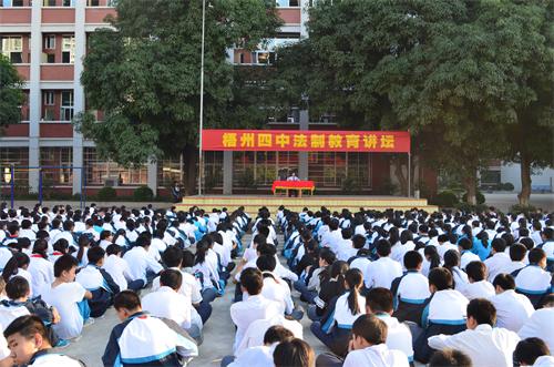 为预防未成年人犯罪,梧州市万秀区人民法院少年庭在审判之余,积极开展以“法官姐姐进校园”法制教育活动。11月24日下午,该院少年庭的“法官姐姐”走进梧州市第四中学,通过“一堂课一封信”的形式,引导学生学法、守法。