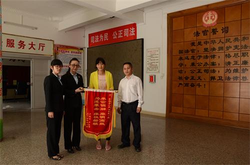2014年12月9日,一位花季少女亲手将维护一面书写着“秉公调解,廉明高洁、为民服务、维权楷模”的锦旗送到苍梧县法院民一庭法官林芸手中,连声感谢林法官帮助她顺利地拿到了30多万元的赔偿款。