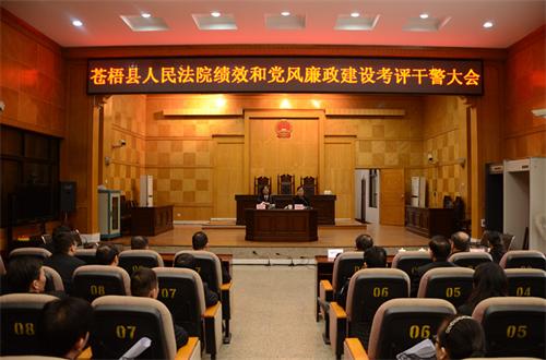 2014年12月10日,以梧州市中级人民法院副院长梁雅彬带队的绩效考评小组来到苍梧法院,就基层法院2014年来的绩效和党风廉政建设进行考评。