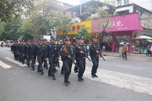 (岑溪市公安局防暴中队着新装武装上街巡逻)
