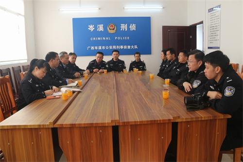 12月17 日,岑溪市公安局政委黄云龙在政工室主任杨旭生、副主任林东等人的陪同下,代表局党委到该局刑侦大队慰问长期战斗在刑事侦查一线的技术人员,并与他们一起座谈。