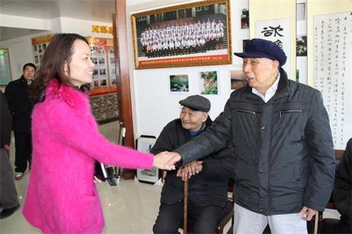 (藤县县委副书记陈坚(左)与汪老院长亲切交谈)