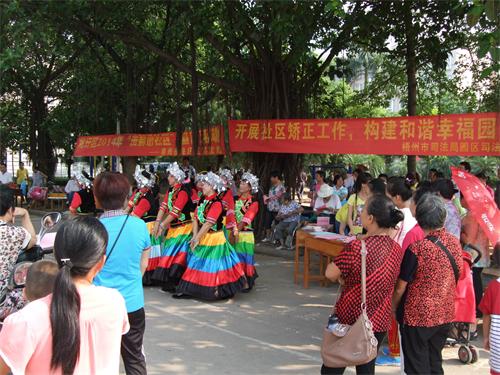 演出共表演了歌舞、小品等10余个节目,形式多样、内容丰富,具有浓厚的生活气息和很强的教育意义。在节目间隙,活动组织者还特意安排了四轮有奖知识问答,专门普及社区矫正知识,极大地激发了群众的参与热情。