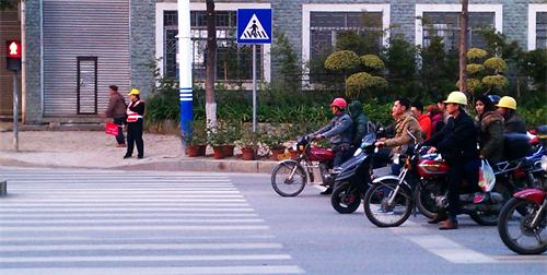 志愿者们统一着装,手持小红旗,在斑马线引导行人有序通过,提醒司机文明礼让。一张张温馨的笑脸,一次次善意的劝导,赢得了众多市民的交口称赞,在繁忙的十字路口竖立了一道靓丽的风景线。