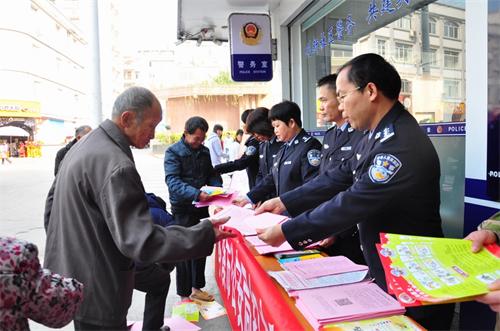 在此次活动中,岑溪市公安局紧紧围绕“110,与你携手共创平安”、“微笑城市 110邀您同行”的主题,通过组织各警种民警以散发宣传资料、现场接受市民咨询等多种方式,积极宣传“110”在依法打击违法犯罪、保障人民群众安居乐业、积极推进平安建设等方面发挥的重要作用和显著成效;积极引导市民可以根据警情现场和自身特殊情况,灵活选择高效的方式向岑溪市公安局报警和求助,切实通过“110”维护自身权益;深入宣传春运道路交通安全知识以及防盗、防抢、防骗、防火和如何远离毒品、如何预防经济犯罪等安全防范知识,不断提高广大市民的自我保护意识和能力。为了加大宣传力度,岑溪市公安局宣传民警在现场积极做好宣传的同时,还运用微博平台进行微博直播,与网民互动,切实做到与群众零距离接触、面对面互动,广泛收集市民群众对“110”报警服务工作的意见和建议,热心解答群众在报警中遇到的问题,听取意见、虚心接受批评,努力改进工作。