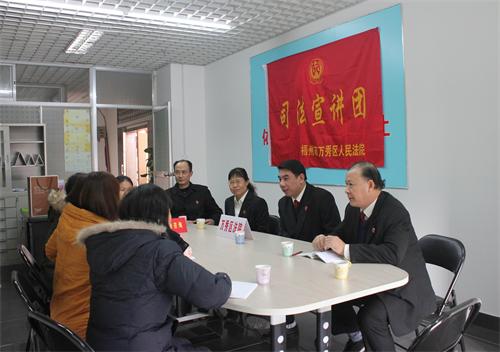 随着群众维权意识的不断增强,社区居民对法律知识的需求也在日渐增长。为了满足社区群众的法律需求,万秀法院通过“法官社区服务室”、“司法宣讲团”等活动,派出法官进社区,为街坊们送法上门。