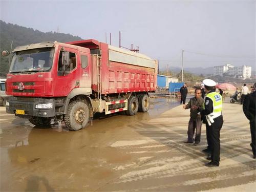 一、严格落实“三个确保”。1月20日,大队民警深入到位于扶典村口的粤桂新城,与该工地负责人进行面谈,要求其切实做到以下要求:一是施工期间,对出入车辆的车轮进行冲洗,确保车辆干净后方可上路行驶;二是发现工地的泥头车辆在道路上行驶过程中有泥土飘洒现象的,必须马上组织人员对路面进行清洗,确保道路整洁;三是工地在施工过程中必须严格执行泥头车管理的各项管理措施,确保安全行车。