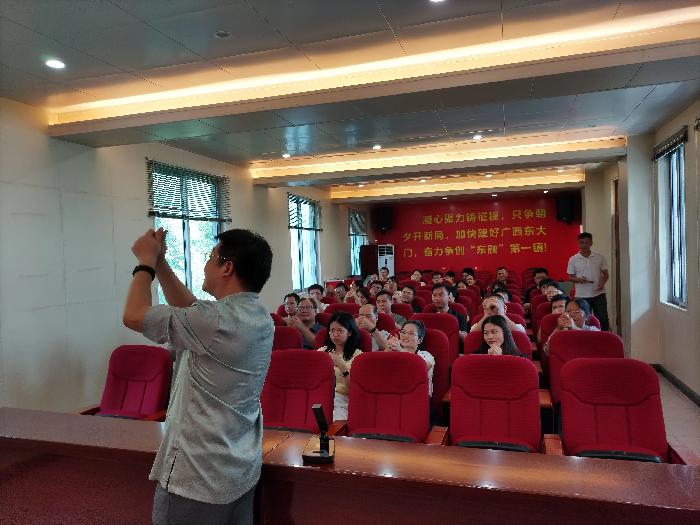 在思维模式引导方面,廖老师重点讲解了“复杂问题简单化”的思维方式,帮助干部职工梳理并处理好“我与世界”“我与他人”“我与自己”这三重关系,从而更好地应对工作和生活中的各种挑战。讲座中穿插的“三个泥瓦匠”的故事,生动形象地阐释了工作态度与人生格局之间的紧密联系,引发了干部职工们的深刻思考。